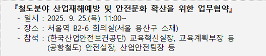 | 2025.09.25. 철도종사자 안전확보를 위해 공동 노력 | |||||||||||||||||